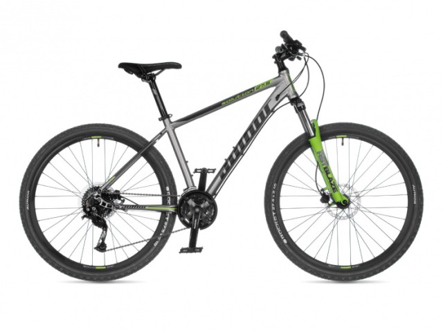 Horské kolo Author Solution má duralový rám. Vybaveno je hydraulickými kotoučovými brzdami Tektro a přehazovačkou Shimano.