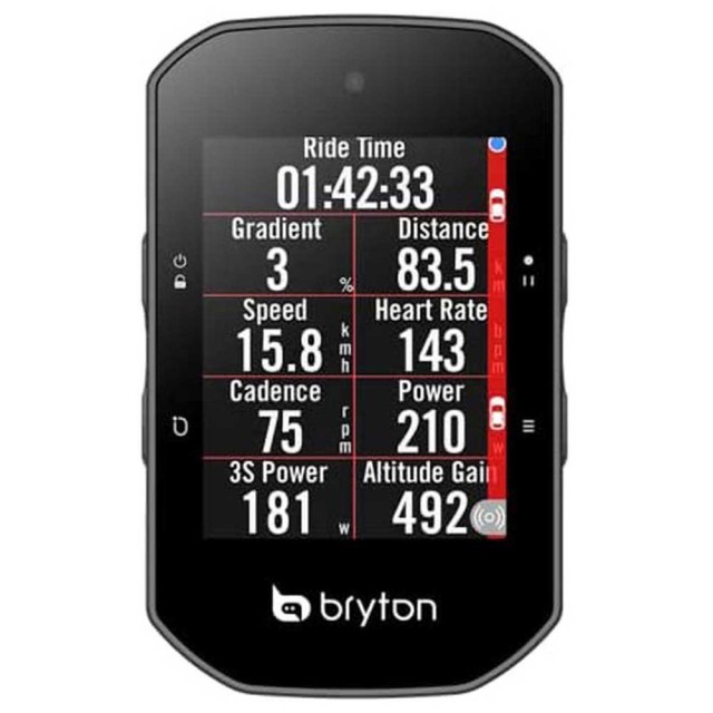 Připojení: Senzory Bluetooth: Srdeční frekvence Senzory AN+: HR: kadence, rychlost, výkon, elektronický systém řazení Kompatibilita s elektronickým systémem řazení: Shimano Di2, SRAM, eTap, CAMPAGNOLO EPS Kompatibilita s aplikací Bryton Active: BLE (iOS a Android) Automatická synchronizace s platformou třetí strany: Strava, TrainingPeaks, Selfloops, Relive, dnešní plán Aktualizace softwaru / GNSS: Aktualizační nástroj Bryton / aplikace Bryton Active Kompatibilní s Golden Cheetach: Ano Cyklistický radar: Ano