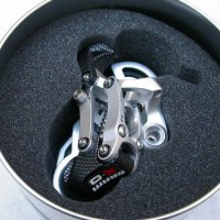 Přehazovačka - "perla" s váhou 200 gramů z karbonu, cnc obrobeného duralu a titanové pružiny Řazení - rovněž s váhou 200 gramů včetně lanek z kompozitu (grilonu) Pro porovnání váha XT 245 gramů (přehazovačka) a 248 gramů (řazení), docela výrazná úspora. Co? Vždyť ale krása něco stojí, to víme.