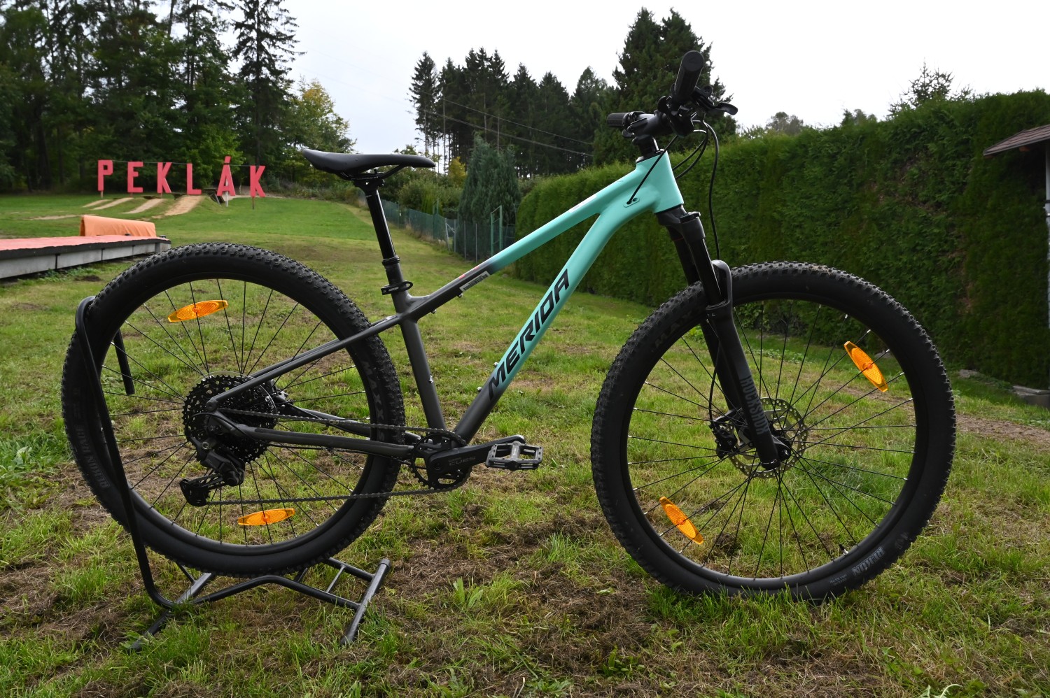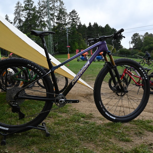 Ve středu 1. října jsme se vydali do bikeparku Peklák, kde se konala prezentace novinek Meridy pro nadcházející sezónu. Akce nabídla nejen možnost prohlédnout si nové modely kol, ale hlavně si je osobně vyzkoušet přímo na trailech. Organizátoři připravili perfektní zázemí i podmínky – testovací zóna byla hned u spodní stanice lanovky, takže se kola dala snadno střídat a porovnávat v různých pasážích tratí.