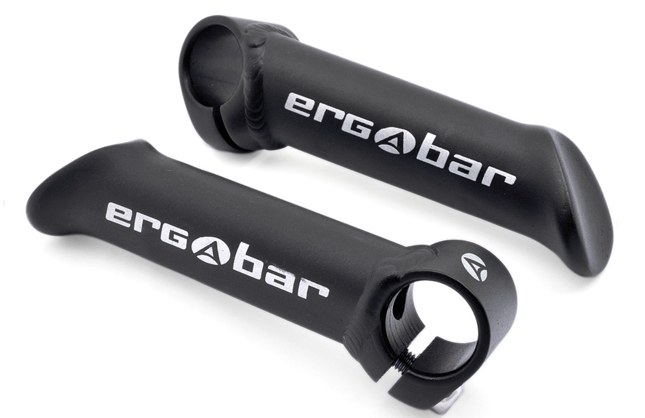 Krátké rohy Ergobar, ergonomický tvar – komfortní úchop, vnější uchycení na řídítka, materiál AL6061T6, hmotnost 206 g.