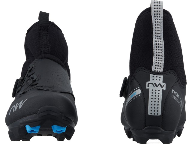 Zimní MTB cyklistické tretry Northwave Celsius XC GTX jsou cyklistické tretry vybavené lehkou a zároveň tuhou kompozitní podešví, která disponuje indexem tuhosti 8 a zaručuje efektivní přenos sil do pedálů. Patní část podešve je vyrobena z přírodní pryže a zaručuje výbornou přilnavost podešve na jakémkoli povrchu. Špička tretry je zesílena potěrem z termoplastického polyuretanu (TPU).